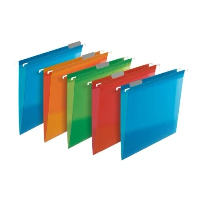 Pack of 5 foolscap suspension files Translucent polypropylene 4 assorted colours (Blue, Orange, Green, Red) Model number: 400076118