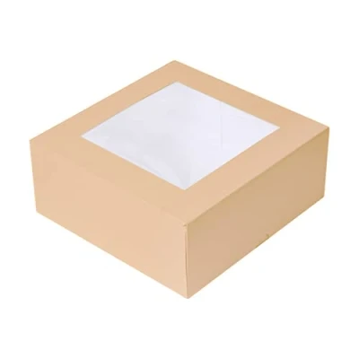 Pack of 50 Pastry Boxes with Window 'Thepack' 240 g/m2 + Opp 18 x 7.5 cm Natural Corrugated Cardboard Nano Micro