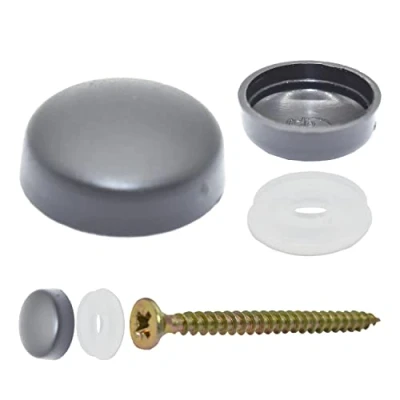 Pack of 50 x Charcoal Grey SNAP ON Two Piece Dome Screw Cover CAPS Small & Bases