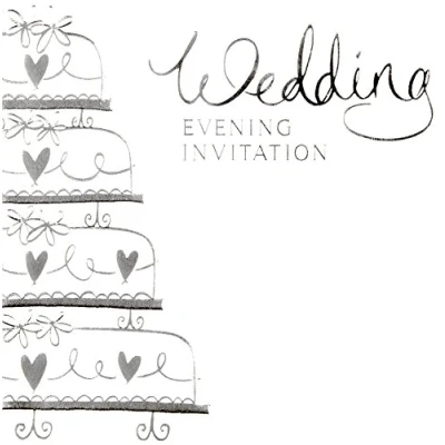 Pack Of 6 Wedding Evening Card Invitations With Envelopes - Silver Foil Wedding Cake Design Approximate Size Of Each Card: 5.25" x 5.25" (13.5cm x 13.5cm) Inside The Card Reads: ...................................................is/are invited to attend the Wedding Evening Reception of.........................................................and.........................................................Date.........................................Time.........................................Place........................................R.S.V.P