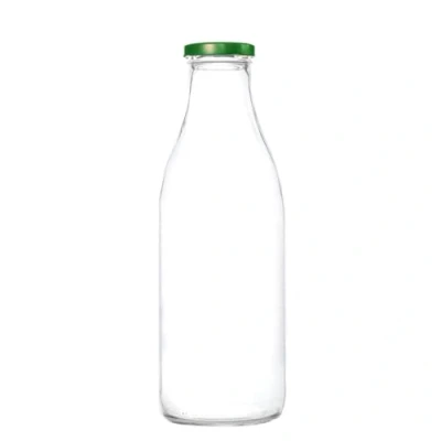 Pack of 6 x 1 Litre Glass Milk Bottles with lids, ideal for Juice & Raw (6 Green Lid)