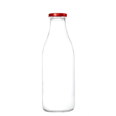 Pack of 6 x 1 Litre Glass Milk Bottles with lids, ideal for Juice & Raw (6 Red Lid)