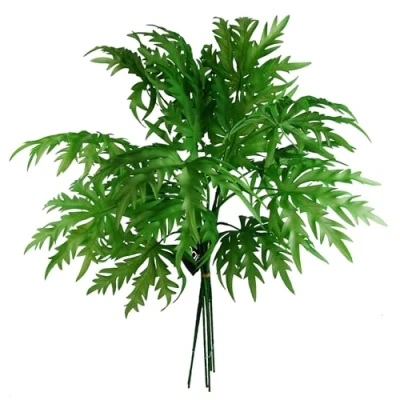 ManoManoGeneral description Pack of 6 x 85cm Artificial Foliage Leaf stems. These large plastic leaf branches feature wired shapable stems, allowing for versatile arrangements. The leaves are realistically shaped plastic, making them suitable for various decorative purposes. Technical specifications Overall height of each stem: 85cm Width of leaves: 30cm Usage Can be used to create arrangements with other artificial flowers. Can be used as standalone decorations. Easy to cut down shorter using wire cutters if required. Other information Some photos show vases to illustrate size and arrangement possibilities; however, no vases or planters are included with this foliage.