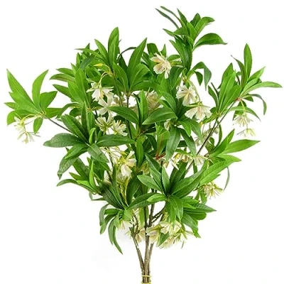 Pack of 6 x Artificial Hainan Elaeocarpus Stem with plastic leaves and flowers Can be used to make arrangements with our other artificial flowers or as decorations on their own Each stem measures 90cm overall height x 15cm wide x 15cm deep with nine flowers These are easy to cut down shorter using a pair of wire cutters if required. Some of our photos show vases to give an idea of size and possibilities for arrangement but no vases or planters are included with these flowers