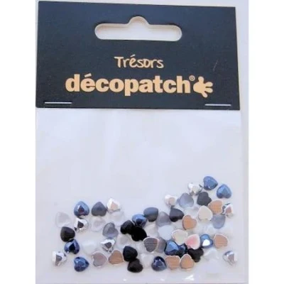 Pack of 60 x extra small Heart plastic gem. Black, White and Silver embellishments - cabochons. Use to add embellishments to your decopatched or painted items. Dimensions: 0.5cm dia Sold in packs containing 60 x embellishments DPR2C CLDPBJ020 CLDPBJ020 MPN BJ020