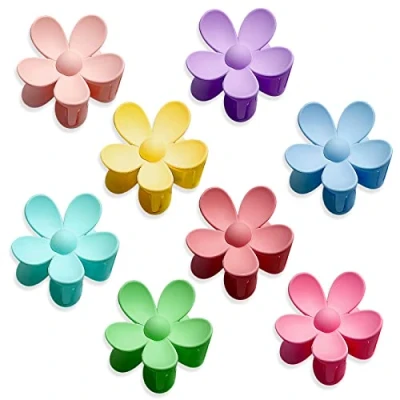 8 pieces matte flower hair claw clips: multiple colours available (8 colours per pack), 8 colours: pink, rose red, purple, yellow, orange, blue, peacock blue, green. Ladies hair clips have a variety of colours. Claw clips can satisfy your daily clothes as you like. High-quality materials: the flower hair clips are made of acrylic resin and alloy, the sturdy and durable material makes them beautiful and exquisite. With rounded edges and smooth surface, do not pull or damage your hair. Hair claw design: large hair clips are the perfect size to keep your hair in a knot or another chic style. Also nice for half bun updo. Perfect for creating simple hairstyles. The clips are designed with double interlocking teeth, can help you hold your hair firmly and do not fall off so easily, large claw capacity, suitable for thick hair, curly hair, thin hair, long straight hair, etc. Portable and durable: easy to carry, you can put in a handbag and take out for convenient use. With flower shape design and smooth matte surface, beautiful and charming. Not easy to rust and break, lightweight and non-slip, delicate workmanship, durable for long-term use Wide application: hair clips can keep your hair clean and dry when doing facial cleansing, make-up, cooking, bathing, eating or working. The hair clips are great for daily wear, parties, ceremonies, birthdays, banquets, Mother's Day, Valentine's Day, Thanksgiving, Christmas, New Year. High-quality flower hair clips are a great gift for your wife, mother, friends, girlfriend, daughters, grandmother or yourself, give them joy.