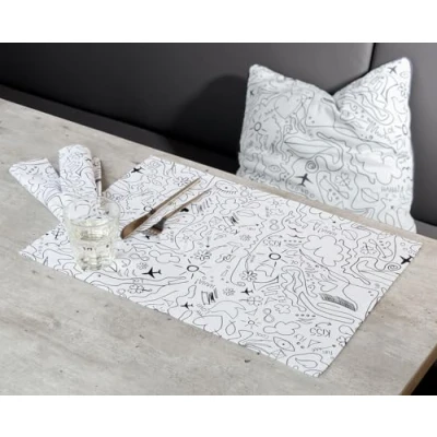 Pack of 8 Placemat, Rectangular, Single Line Design, Cotton, White, PU 8, L. 50cm, W. 35cm