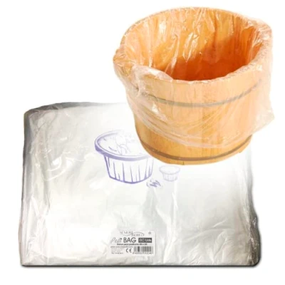 Strong and transparent plastic bags to cover bathtubs in foot treatments in beauty centers, aesthetics, SPA, .... Size: 66 x 55 cm. Pack of 80