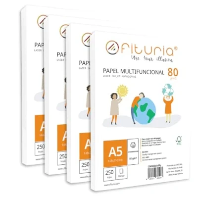 Pack of 80g A5 Sheets, 1500 White Multifunction Paper for School and Laboratory, Ideal Laser Printers, Inkjet Printers or Copiers Ofituria