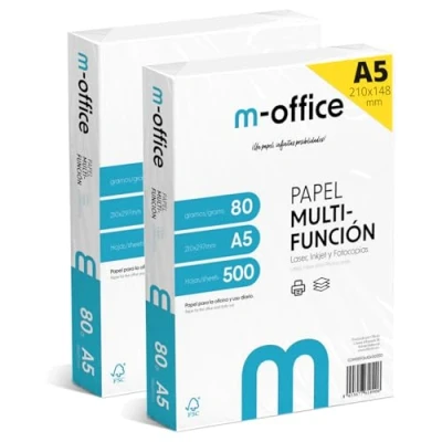 Paper: m-office paper has an A5 size (148x210 mm) with a weight of 80 g, contains 1000 white sheets. Made with durable materials ensuring excellent print and writing quality on every page. Variety of Paper Uses: One of the main uses of paper is for printing documents, for writing and drawing, for education and training...etc. A5 paper, with its dimensions of 14.8 x 21 cm, is ideal for carrying in purses and backpacks, making it perfect for taking quick notes at meetings or classes. MULTI-FUNCTION PAPER - A5 paper is also a popular format for taking notes, drawing and sketching. It is compatible with most home and office printers, allowing you to print documents, reports, and brochures without any size issues. PERFECT FOR DAILY AND OFFICE JOBS - Its compact size is perfect for use in personal journals, planners and planning notebooks, helping to organize daily tasks and long-term goals. With Environmental Certificates: The sheets are FSC certified (responsibly managed forests) and are 100% recyclable. Committed to the environment.