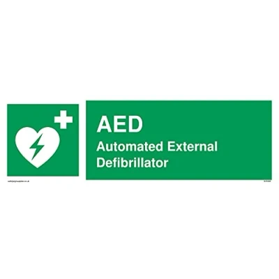 No Symbol This sign is made from vinyl / sticker ‘Air Release†vinyl makes it easy to stick to flat, clean surfaces without bubbles. Not for rough, plastic or dusty surfaces. 31 landscape Sign Text: AED Automated External Defilbrilator with heart defibrillator symbol