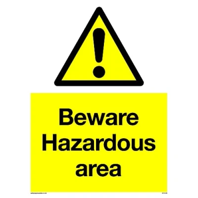 Pack of five Beware Hazardous Area Sign 150x200mm A5P
