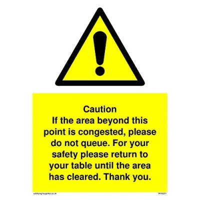 No Symbol This sign is made from vinyl / sticker ‘Air Release†vinyl makes it easy to stick to flat, clean surfaces without bubbles. Not for rough, plastic or dusty surfaces. A5 portrait Sign Text: Caution if area beyond this point is congested, please do not queue