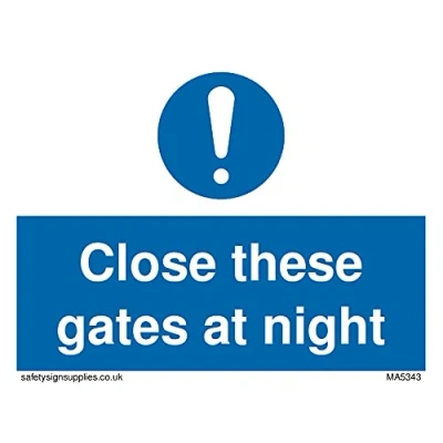 Pack of five Close these gates at night Sign 100x75mm A7L