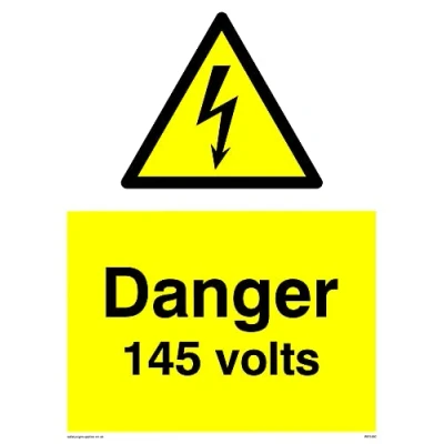 Pack of five Danger 145 Volts Sign 150x200mm A5P