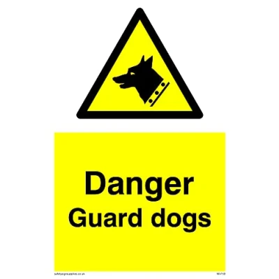 No Symbol This sign is made from vinyl / sticker ‘Air Release†vinyl makes it easy to stick to flat, clean surfaces without bubbles. Not for rough, plastic or dusty surfaces. A6 portrait Sign Text: Danger Guard Dogs