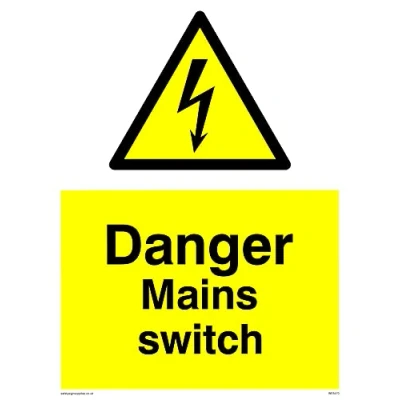 No Symbol This sign is made from vinyl / sticker ‘Air Release†vinyl makes it easy to stick to flat, clean surfaces without bubbles. Not for rough, plastic or dusty surfaces. A5 portrait Sign Text: Danger Mains Switch