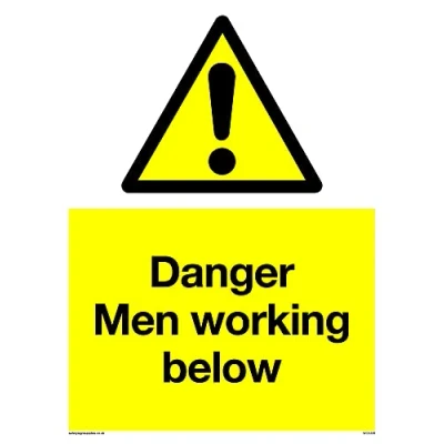 No Symbol This sign is made from vinyl / sticker ‘Air Release†vinyl makes it easy to stick to flat, clean surfaces without bubbles. Not for rough, plastic or dusty surfaces. A5 portrait Sign Text: Danger Men Working Below