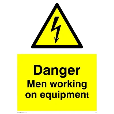 No Symbol This sign is made from vinyl / sticker ‘Air Release†vinyl makes it easy to stick to flat, clean surfaces without bubbles. Not for rough, plastic or dusty surfaces. A5 portrait Sign Text: Danger Men Working On Equipment