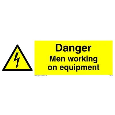 No Symbol This sign is made from vinyl / sticker ‘Air Release†vinyl makes it easy to stick to flat, clean surfaces without bubbles. Not for rough, plastic or dusty surfaces. 15 landscape Sign Text: Danger Men Working On Equipment