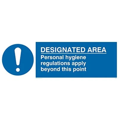 No Symbol This sign is made from vinyl / sticker ‘Air Release†vinyl makes it easy to stick to flat, clean surfaces without bubbles. Not for rough, plastic or dusty surfaces. 31 landscape Sign Text: Deated Area Hygiene Rules