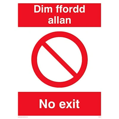 No Symbol This sign is made from vinyl / sticker ‘Air Release†vinyl makes it easy to stick to flat, clean surfaces without bubbles. Not for rough, plastic or dusty surfaces. A5 portrait Sign Text: Dim Ffordd Allan No Exit