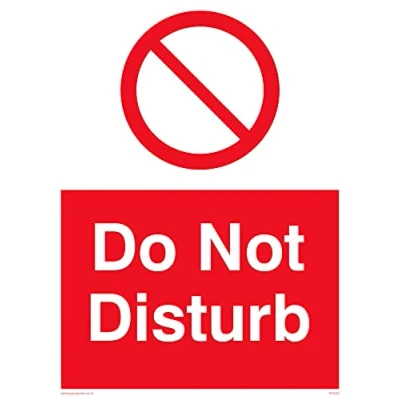 No Symbol This sign is made from vinyl / sticker ‘Air Release†vinyl makes it easy to stick to flat, clean surfaces without bubbles. Not for rough, plastic or dusty surfaces. A5 portrait Sign Text: Do Not Disturb