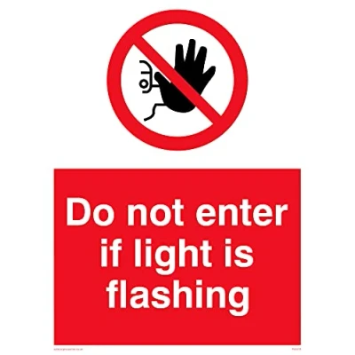 No Symbol This sign is made from vinyl / sticker ‘Air Release†vinyl makes it easy to stick to flat, clean surfaces without bubbles. Not for rough, plastic or dusty surfaces. A5 portrait Sign Text: Do Not Enter If Light Is Flashing