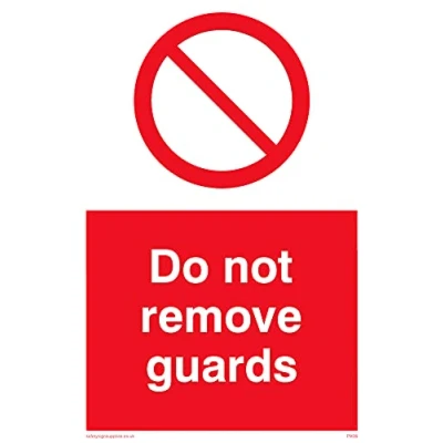 No Symbol This sign is made from vinyl / sticker ‘Air Release†vinyl makes it easy to stick to flat, clean surfaces without bubbles. Not for rough, plastic or dusty surfaces. A6 portrait Sign Text: Do Not Remove Guards
