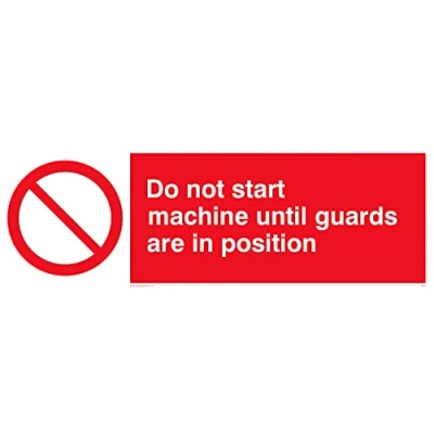 No Symbol This sign is made from vinyl / sticker ‘Air Release†vinyl makes it easy to stick to flat, clean surfaces without bubbles. Not for rough, plastic or dusty surfaces. 31 landscape Sign Text: Do Not Start Until Guarded