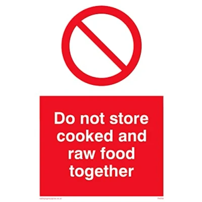 No Symbol This sign is made from vinyl / sticker ‘Air Release†vinyl makes it easy to stick to flat, clean surfaces without bubbles. Not for rough, plastic or dusty surfaces. A6 portrait Sign Text: Do Not Store Cooked And Raw Food Together