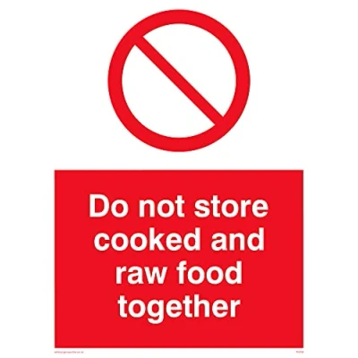 No Symbol This sign is made from vinyl / sticker ‘Air Release†vinyl makes it easy to stick to flat, clean surfaces without bubbles. Not for rough, plastic or dusty surfaces. A5 portrait Sign Text: Do Not Store Cooked And Raw Food Together