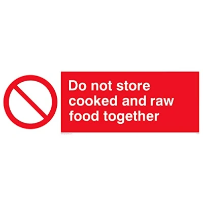 No Symbol This sign is made from vinyl / sticker ‘Air Release†vinyl makes it easy to stick to flat, clean surfaces without bubbles. Not for rough, plastic or dusty surfaces. 31 landscape Sign Text: Do Not Store Cooked And Raw Food Together