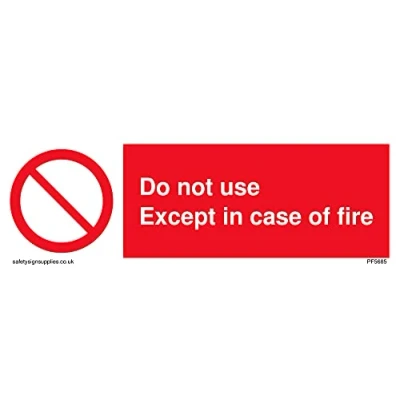 No Symbol This sign is made from vinyl / sticker ‘Air Release†vinyl makes it easy to stick to flat, clean surfaces without bubbles. Not for rough, plastic or dusty surfaces. 15 landscape Sign Text: Do Not Use Except In Case Of Fire