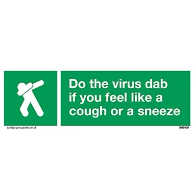 No Symbol This sign is made from vinyl / sticker ‘Air Release†vinyl makes it easy to stick to flat, clean surfaces without bubbles. Not for rough, plastic or dusty surfaces. 15 landscape Sign Text: Do the virus dab if you feel like a cough or a sneezewith safe condition dab symbol