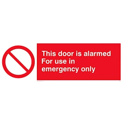 No Symbol This sign is made from vinyl / sticker ‘Air Release†vinyl makes it easy to stick to flat, clean surfaces without bubbles. Not for rough, plastic or dusty surfaces. 31 landscape Sign Text: Door AlarmedEmergency Only