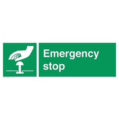 No Symbol This sign is made from vinyl / sticker ‘Air Release†vinyl makes it easy to stick to flat, clean surfaces without bubbles. Not for rough, plastic or dusty surfaces. 31 landscape Sign Text: Emergency Stop