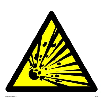 No Symbol This sign is made from vinyl / sticker ‘Air Release†vinyl makes it easy to stick to flat, clean surfaces without bubbles. Not for rough, plastic or dusty surfaces. S15 square Sign Text: Explosive Material Warning Symbol Only