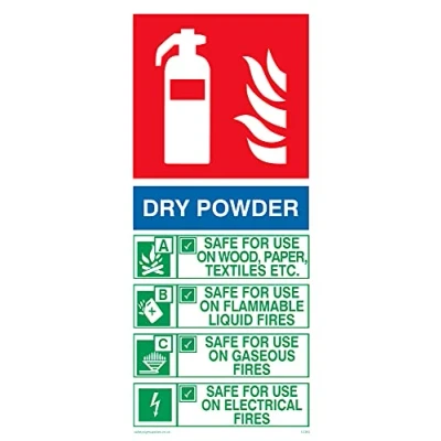 No Symbol This sign is made from vinyl / sticker ‘Air Release†vinyl makes it easy to stick to flat, clean surfaces without bubbles. Not for rough, plastic or dusty surfaces. 12 portrait Sign Text: Extinguisher contains dry powder instructions