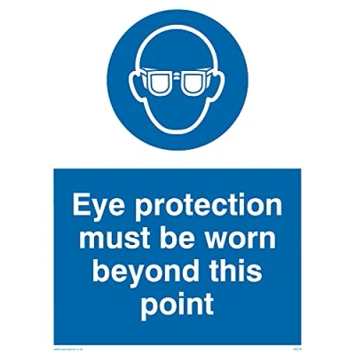 No Symbol This sign is made from vinyl / sticker ‘Air Release†vinyl makes it easy to stick to flat, clean surfaces without bubbles. Not for rough, plastic or dusty surfaces. A5 portrait Sign Text: Eye Protection Must Be Worn Beyond This Point