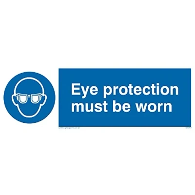 NO SYMBOL This sign is made of vinyl/sticker "Air Release" vinyl makes it easy to stick to flat, clean surfaces with no bubbles. Not for rough, plastic or dusty surfaces. 15 Landscape Sign text: Eye protection must be worn