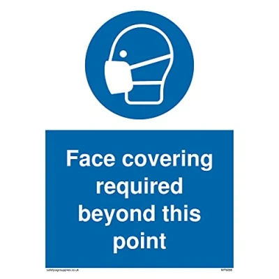 M016 : Wear a mask This sign is made from vinyl high tack A stickier sticker. Uses a stronger adhesive to make it more suitable for plastic surfaces like Wheelie Bins or where the sticker might get rubbed. A5 portrait Sign Text: Face covering required beyond this point