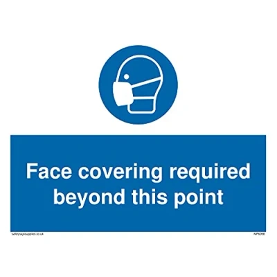 M016 : Wear a mask This sign is made from vinyl high tack A stickier sticker. Uses a stronger adhesive to make it more suitable for plastic surfaces like Wheelie Bins or where the sticker might get rubbed. A5 landscape Sign Text: Face covering required beyond this point
