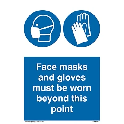 No Symbol This sign is made from vinyl / sticker ‘Air Release†vinyl makes it easy to stick to flat, clean surfaces without bubbles. Not for rough, plastic or dusty surfaces. A6 portrait Sign Text: Face masks and gloves must be worn beyond this point