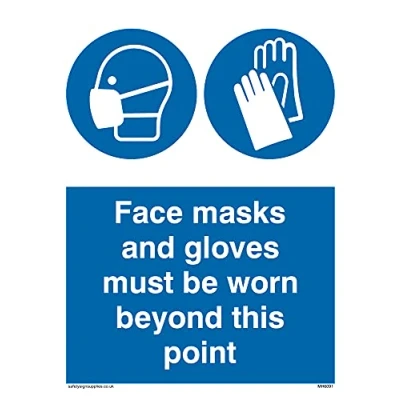 No Symbol This sign is made from vinyl / sticker ‘Air Release†vinyl makes it easy to stick to flat, clean surfaces without bubbles. Not for rough, plastic or dusty surfaces. A5 portrait Sign Text: Face masks and gloves must be worn beyond this point