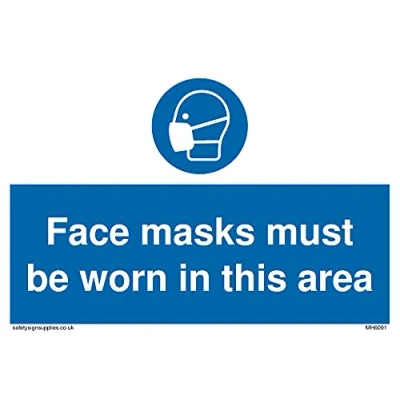 Pack of five Face masks must be worn in this area Sign 150x100mm A6L