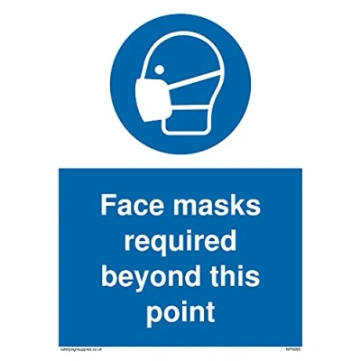 M016 : Wear a mask This sign is made from vinyl high tack A stickier sticker. Uses a stronger adhesive to make it more suitable for plastic surfaces like Wheelie Bins or where the sticker might get rubbed. A5 portrait Sign Text: Face masks required beyond this point