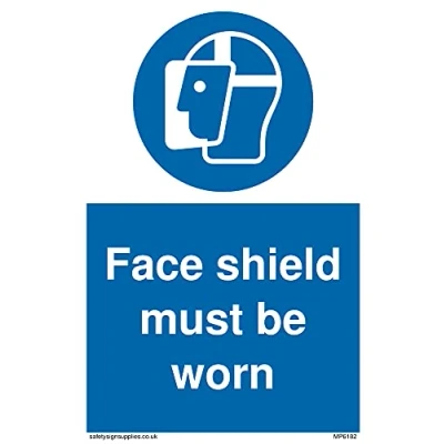 No Symbol This sign is made from vinyl / sticker ‘Air Release†vinyl makes it easy to stick to flat, clean surfaces without bubbles. Not for rough, plastic or dusty surfaces. A6 portrait Sign Text: Face sheild must be worn