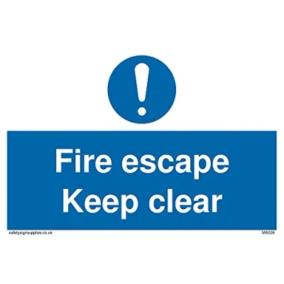 No Symbol This sign is made from vinyl / sticker ‘Air Release†vinyl makes it easy to stick to flat, clean surfaces without bubbles. Not for rough, plastic or dusty surfaces. A6 landscape Sign Text: fire escape keep clear