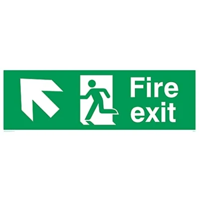 No Symbol This sign is made from vinyl / sticker ‘Air Release†vinyl makes it easy to stick to flat, clean surfaces without bubbles. Not for rough, plastic or dusty surfaces. 31 landscape Sign Text: Fire Exit – Up Left